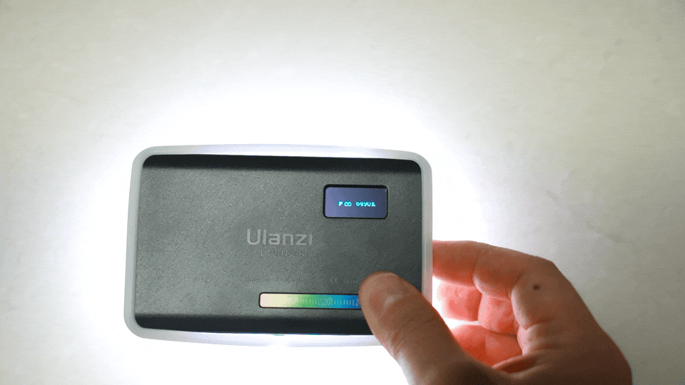 디스플레이가 탑재되어 있어 배터리 잔량이나 조명 세팅값 조절을 할 수 있다. 밝기 조절도 가능하고 CCT, RGB 등 다양한 조명 모드를 사용할 수 있어서 실내에서 촬영 시 취향에 맞는 무드를 표현할 수도 있었다.