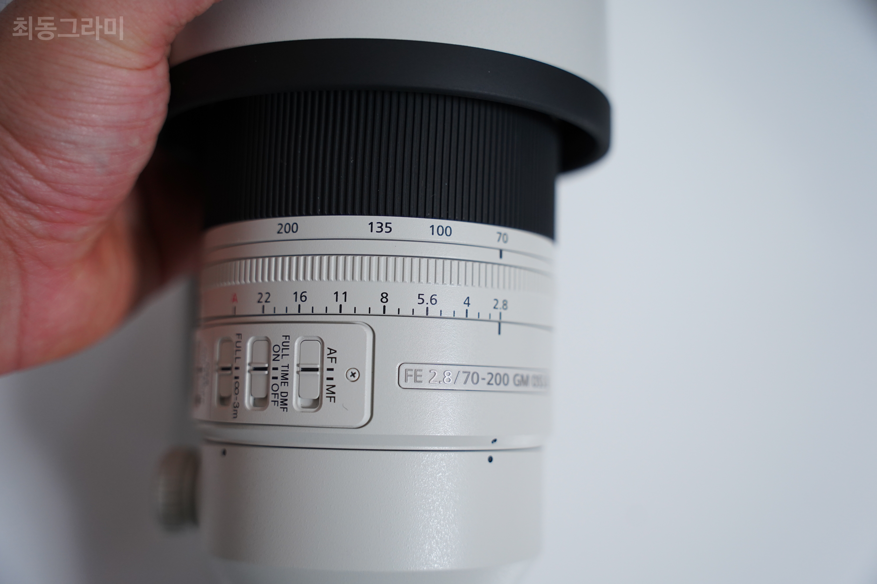 버튼들은 G master 렌즈답게 꽤 많이 탑재되어있습니다. 기본적으로 손떨방인 OSS도 On/Off 할 수 있으며, AF/MF 전환 버튼, 핀포인트 초점 구현 가능한 풀타임 DMF 전환 버튼, AF 속도 극대화를 위한 초점거리 제한 버튼, 흔들림 보정 모드 1,2,3 버튼도 탑재되어 있습니다.