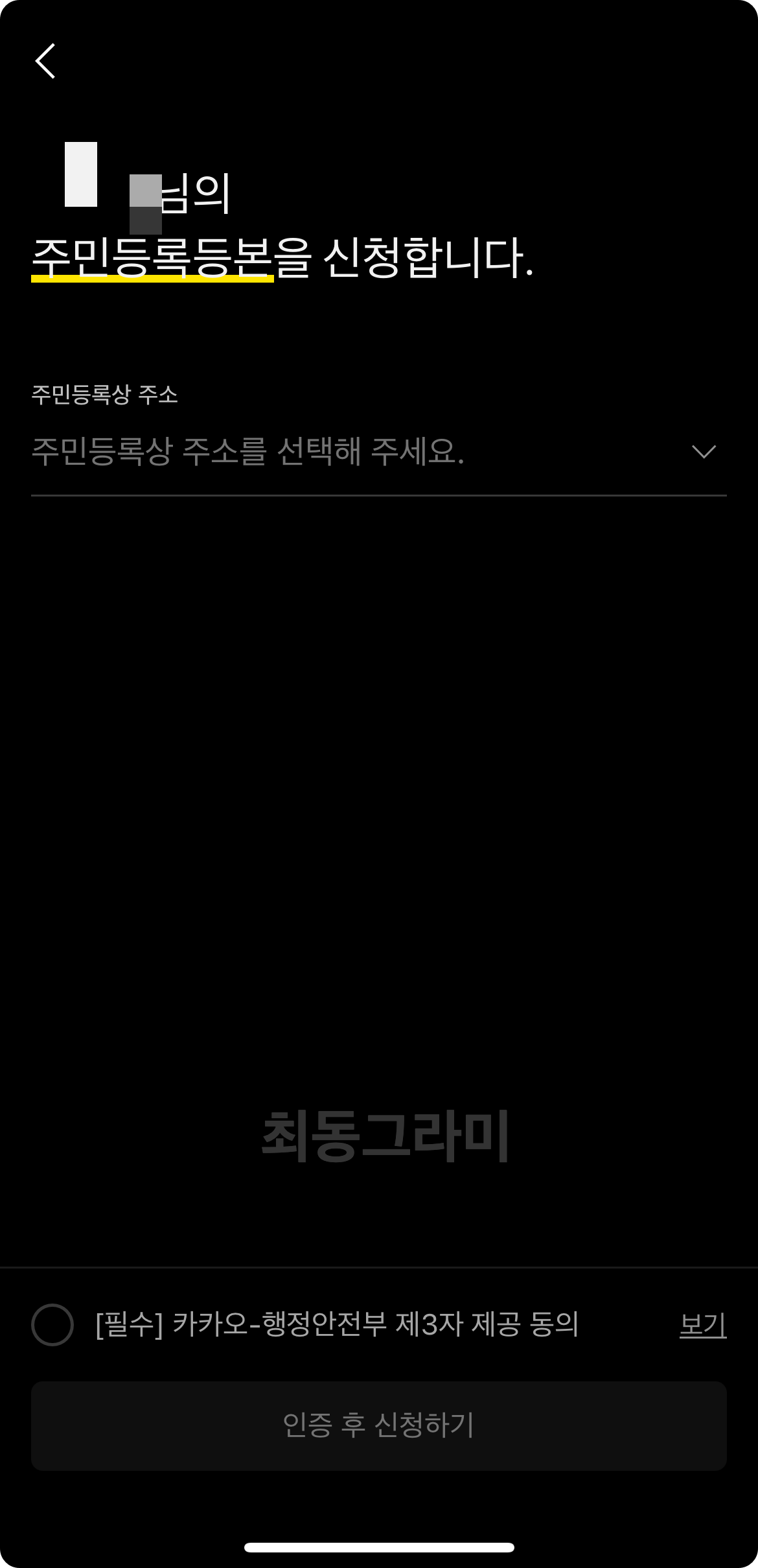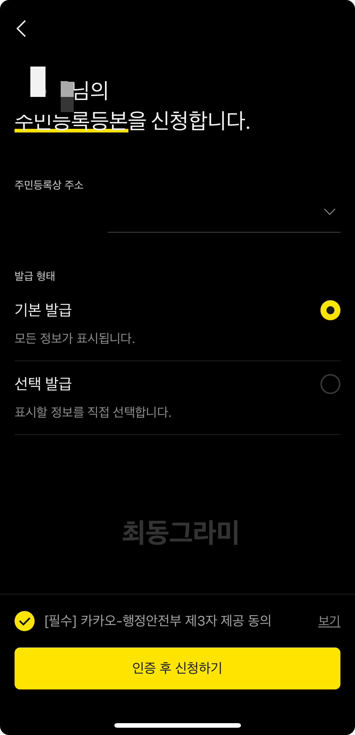 주민등록상 주소를 선택해서 개인정보 제공 동의 체크한 뒤 신청 버튼을 누르면 되는데요?