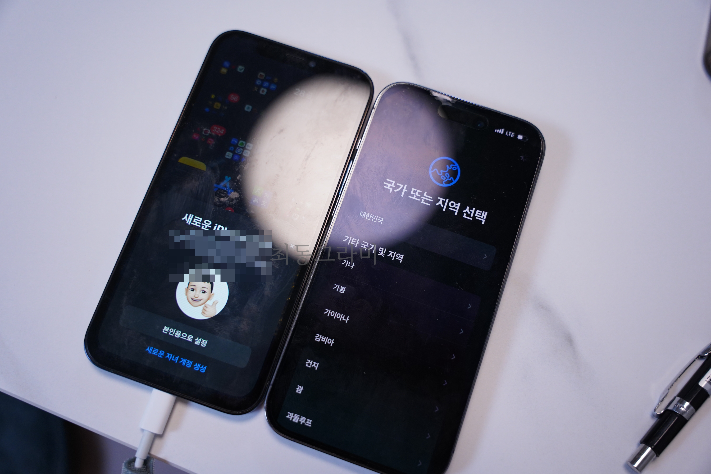 초기화가 완료되면 새 폰에서 '안녕하세요'의 아이폰 처음 켰을 때 문구가 뜨는데 위로 스와이프하면 언어와 지역 설정을 해야 한다. 이 설정은 대충 세팅하면 되고 마치면 이제 기존 폰에서 데이터는 단계로 넘어간다.